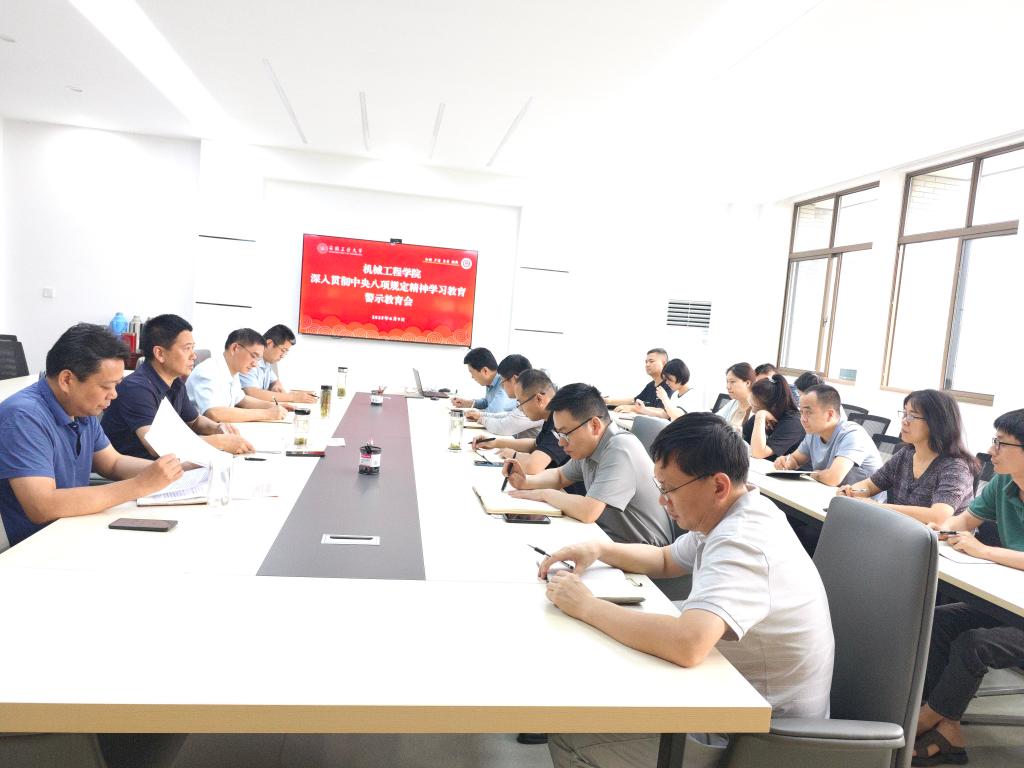 6月9日下午,机械工程学院在机械楼302会议室召开深入贯彻中央八项规定精神学习教育警示教育会,院领导班子、党支部书记及系(室)中心主任参会,会议由院党委书记吴文兵主持。