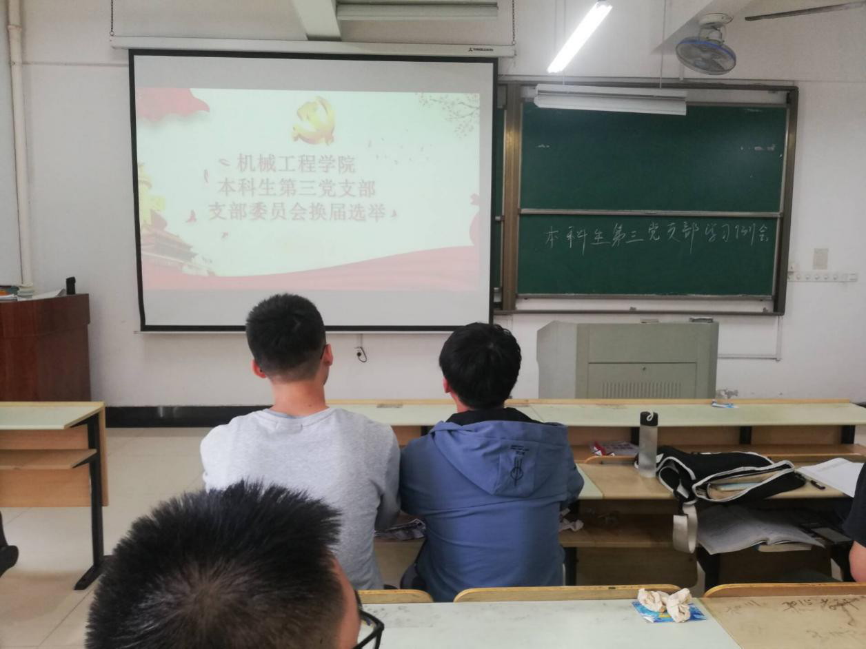 10月21日中午,机械工程学院本科生第三党支部,在机械楼413召开支部换届选举大会。会议由支部书记王琴老师主持。
