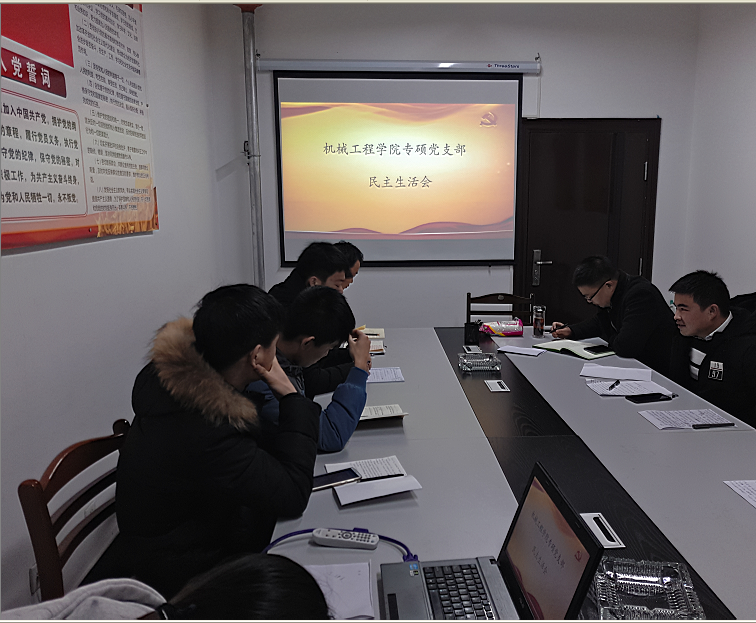 1月12日上午9点,机械工程学院专硕党支部在机械楼306召开组织生活会。会议由支部书记董春辉主持,支部全体党员参加本次会议。
