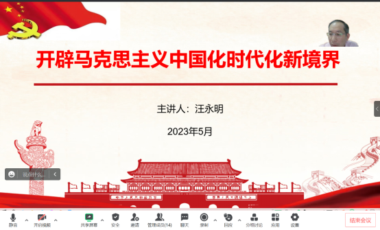为深入学习贯彻习近平新时代中国特色社会主义思想,5月23日晚,机械工程学院副院长汪永明为机械设计制造及其自动化党支部讲授了题为“开辟马克思主义中国化时代化新境界”的线上专题党课,支部全体教师党员参加了党课学习。