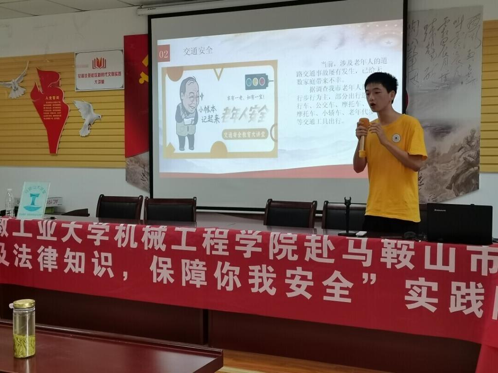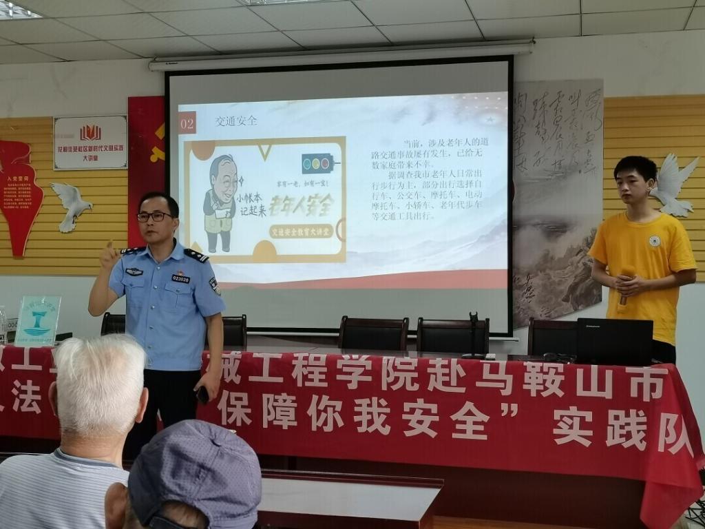 7月16日,机械工程学院“普及法律知识,保障你我安全“实践队前往花和佳苑社区,为近三十位老人宣讲交通安全。