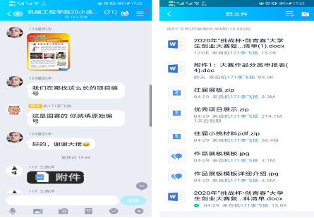 为进一步提升作品的专业水平,机械工程学院团委学生会及时梳理入围作品,组建“机械工程学院2020小挑复赛”QQ群,及时将赛事变动要求及复赛准备材料清单、参考材料等上传群文件,供复赛团队参考。同时,督促复赛团队积极联系指导老师,我院专业教师利用五一假期积极指导各团队完善比赛资料。