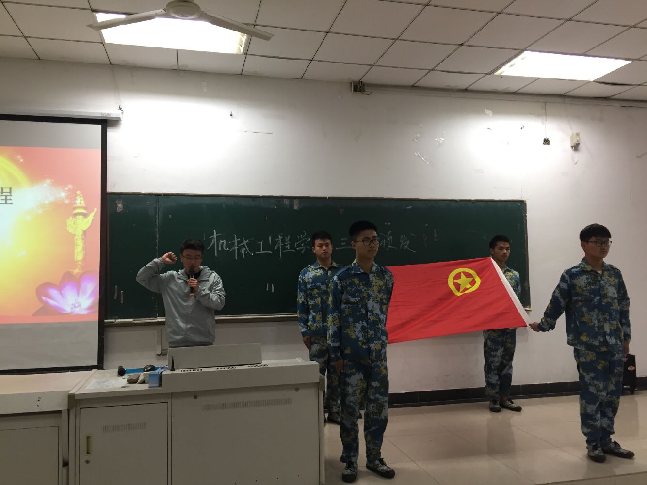 机械工程学院2019级新生团员“三证颁发”仪式于10月27日中午在教三南103教室举行,学院团委书记王琴、团委副书记章军、高琦出席本次仪式,全体2019级新生参加了仪式,仪式由学院组织部干事张浩杰主持。