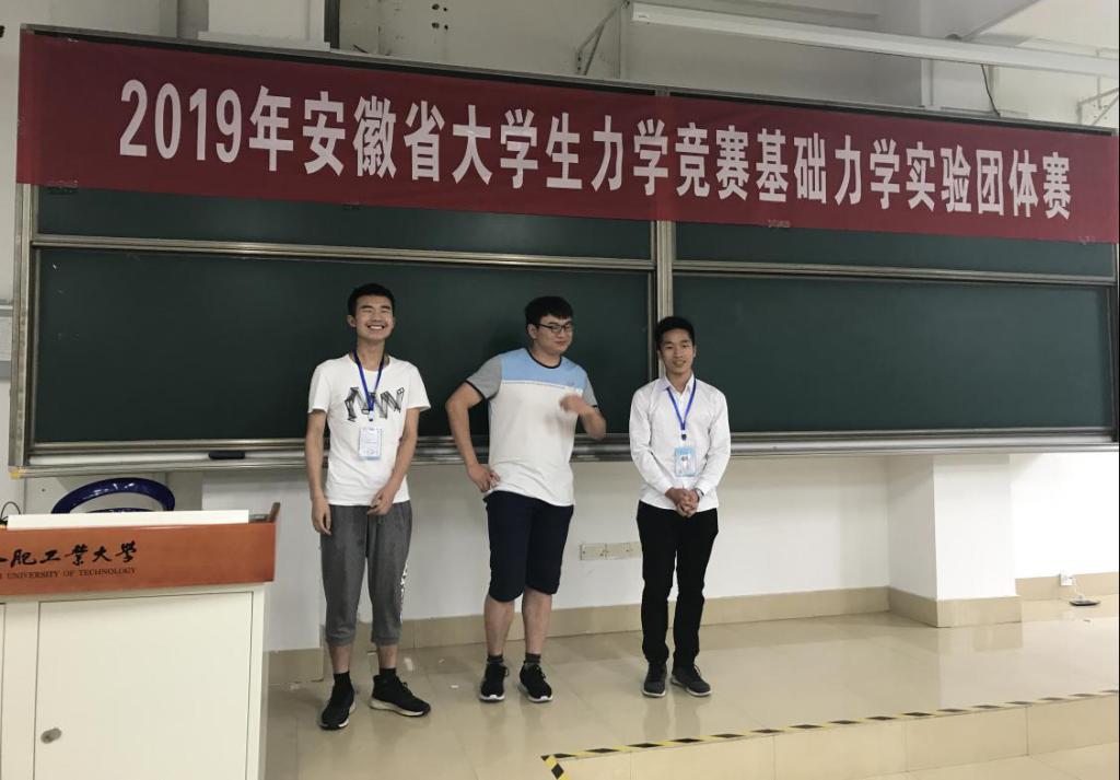 7月15日至16日,“2019年安徽省大学生力学竞赛基础力学实验团体赛”在合肥工业大学如期举行。由机械工程学院的李程、周冉、夏昌荣三位同学组成的我校代表队,在与中国科学技术大学代表队等强队的同场竞技中,表现优异,勇夺第一名,荣获唯一的特等奖,实现了历史性突破。我校代表队无论从测试方案设计和实施,还是答辩等环节,无不展现出了安工大学子的独特风采,出色地完成规定的工程测试任务。我校指导教师黄志来和王彪荣获优秀指导教师奖。