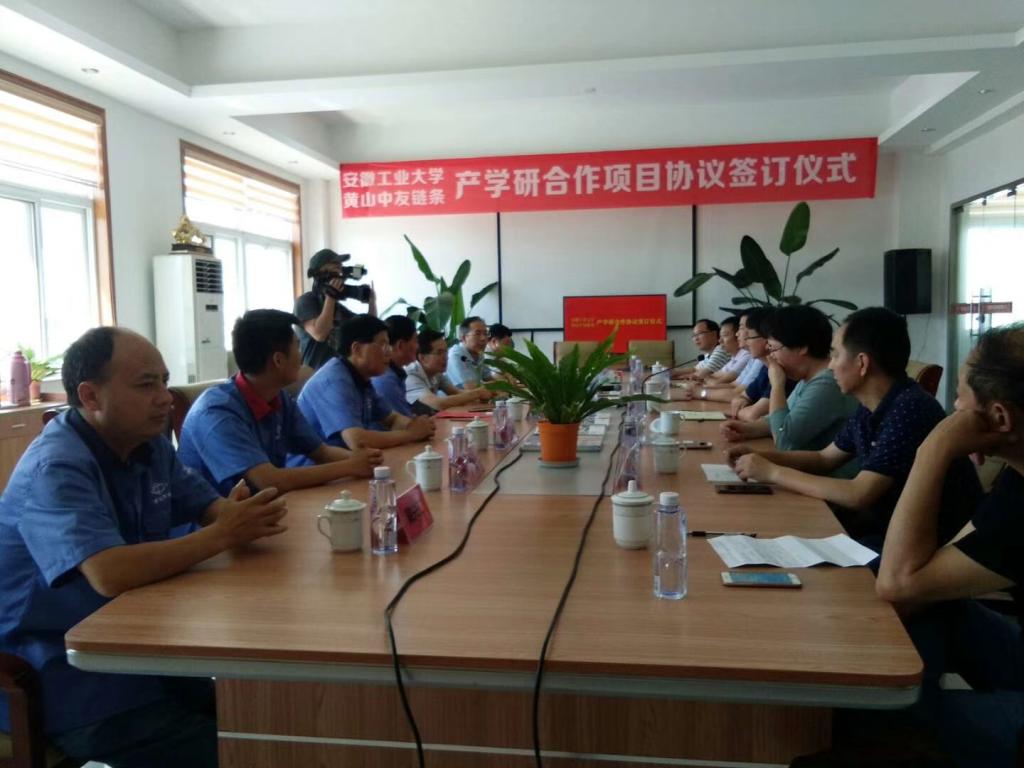 6月7日上午,机械工程学院党委书记徐柳根、副院长汪永明、项目技术负责人谈莉斌一行,赴绩溪县黄山中友链条制造有限公司,出席安徽工业大学教学科研实践基地挂牌暨产学研合作签字仪式。绩溪县分管领导姚强副县长,县科技局、经信委、园区负责人等出席见证。