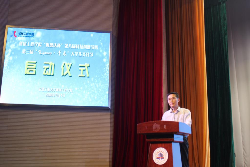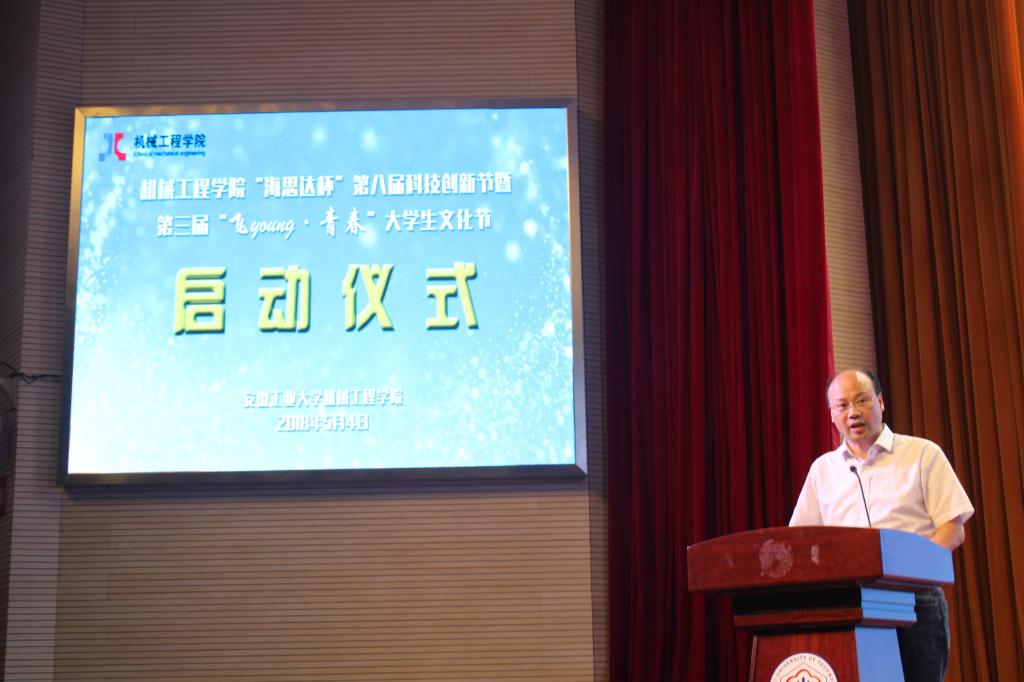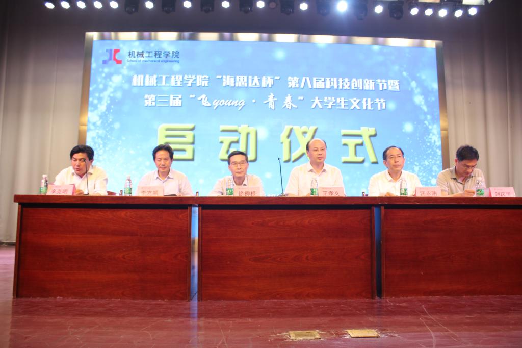 为了繁荣学院科技文化,培养广大学生的科技创新精神和实践动手能力,营造有利于学生健康成长的校园科学文化氛围,5月4日,机械工程学院“海思达杯”第八届大学生科技创新节暨第三届“飞young·青春“大学生文化节启动仪式在秀山校区新大学生活动中心正式举办。本次活动由院党委副书记、副院长李克明负责主持,出席活动的嘉宾有院党委书记徐柳根,院长王孝义,海思达机器人有限公司总经理李友顺,副院长汪永明、副院长刘庆运。