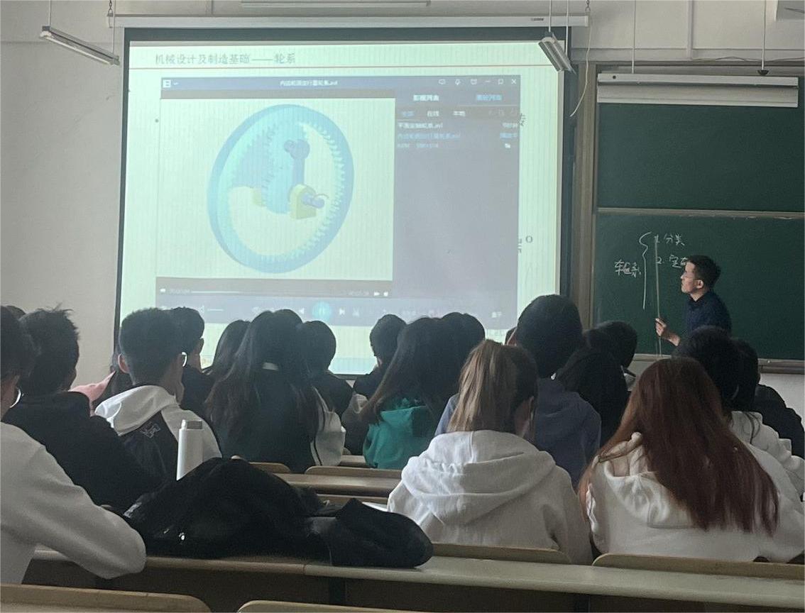 本次示范课,由我院省级课程思政示范项目课程负责人朱庆老师进行示范,11号下午14:00第五节课《机械设计及制造基础》,讲授章节为轮系。在引入课程内容时,朱老师从红色歌曲《团结就是力量》开始,告诉大家要团结一致,在讲授定轴轮系传动比的计算时,引导学生分析问题要懂得归纳总结,在讲授周转轮系传动比计算时,告诫同学一定要打牢基础,巧妙地将课程思政融入轮系的授课过程中。