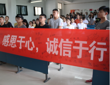 5月14日,机械工程学院在佳山校区教三北119教室举办诚信签名活动,100多名机械学子积极主动参与此次签名活动,他们在横幅上认真签署自己的名字,并进行集体宣誓。通过此次签名活动,大力弘扬诚信文化,倡导诚信行为,引导广大机械学子诚信立身,诚信待人,诚信处事。(撰稿:汪辉 审核:李克明)