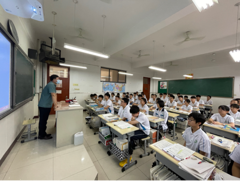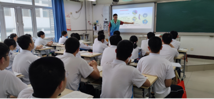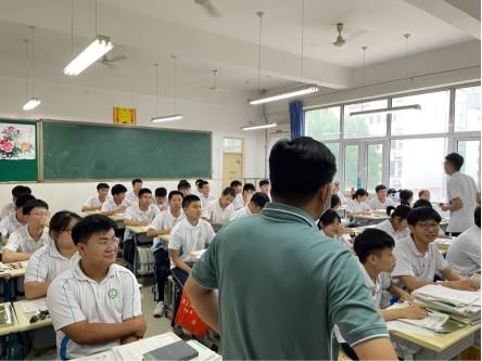 图为实践队员来到高三明星班级宣讲