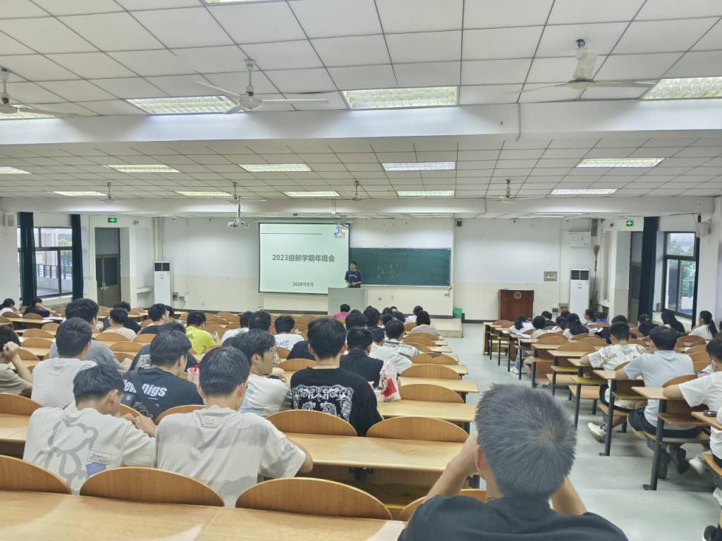 2025年9月15日,机械工程学院2023级于东教一阶201、东教一阶202教室召开新学期年级会,围绕学生手册、安全教育、晚考勤制度及防范电信诈骗等多项内容展开,旨在进一步加强学生管理,增强学生安全意识。