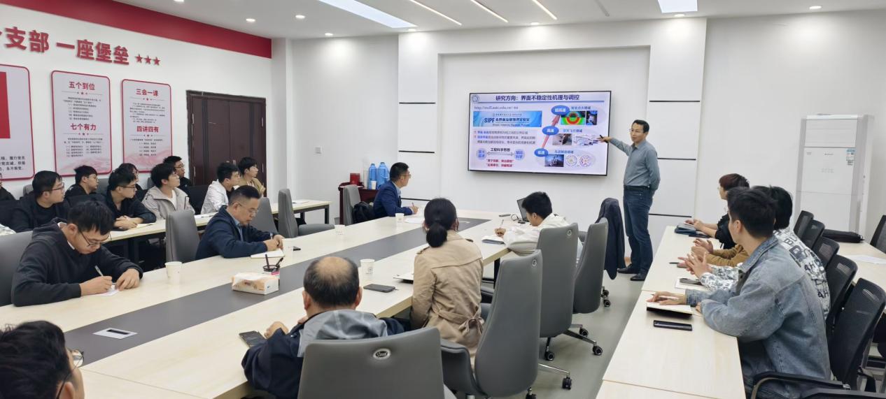 司廷教授从核聚变点火、航空发动机、国防尖端武器等重大工程问题切入,详细介绍了激波诱导流体界面不稳定性问题。报告还将中国科大科研团队近年来所研制的新型激波管设备进行了详细介绍,包括利用激波管可控生成汇聚激波和强激波,在激波管中开展界面不稳定性实验,揭示界面模态竞争与耦合、曲率效应、汇聚效应等对界面失稳演化的影响规律和内在机理,最后展望了在该领域的研究方向。
