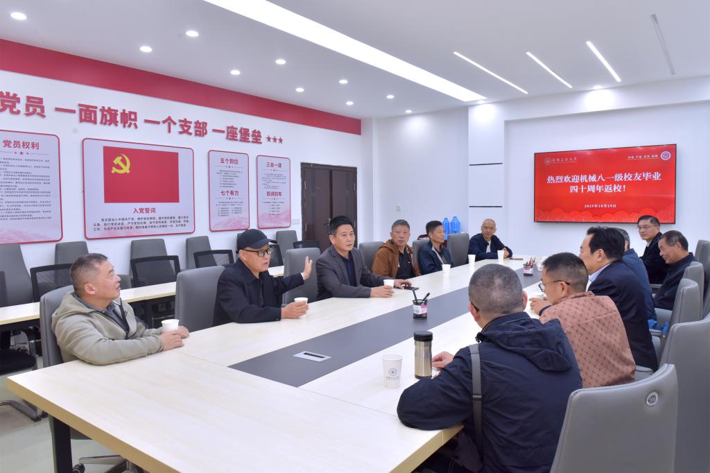 吴文兵代表学院向荣归母校的机械八一级校友致以热烈欢迎。他强调,校友是学院宝贵的财富,也是学院发展的见证者和参与者。四十年来,校友们在各行各业兢兢业业、拼搏奋斗,为国家机械工业发展和地方经济建设作出重要贡献,也为母校赢得了广泛声誉。他希望校友们常回母校看看,持续关注学院发展,多提宝贵建议,携手谱写学院高质量发展新篇章。