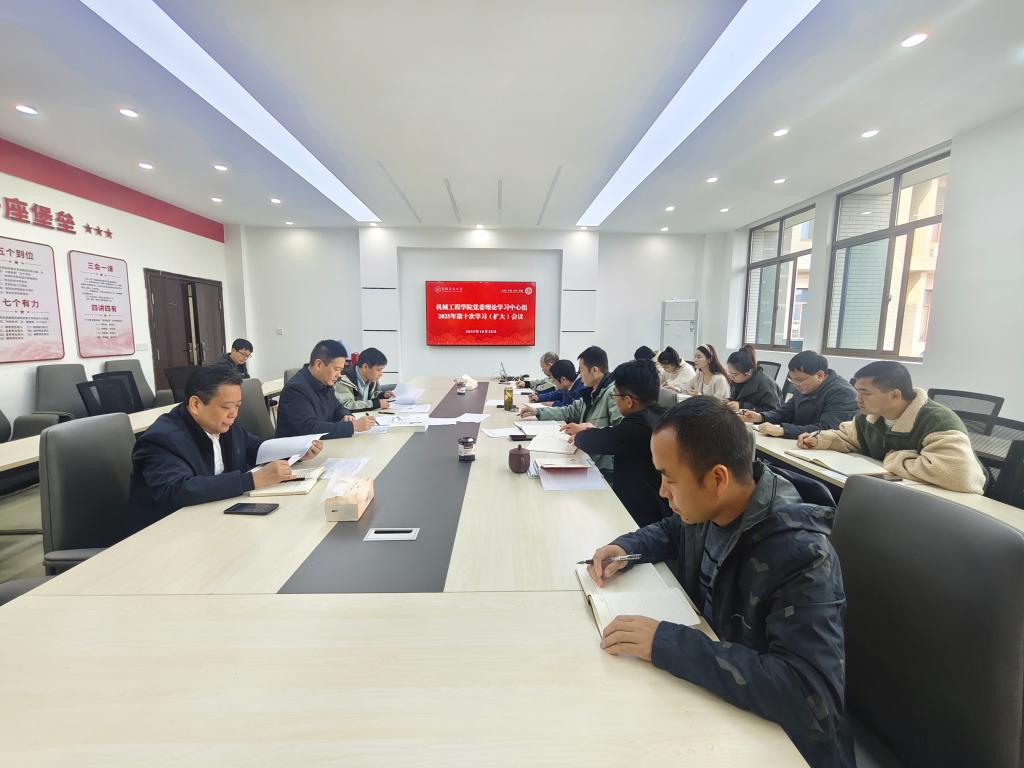 10月28日上午,学院党委理论学习中心组2025年第十次学习(扩大)会议在机械楼302会议室召开。院党委书记吴文兵主持会议,院党委理论学习中心组成员参加学习,党支部书记列席会议。