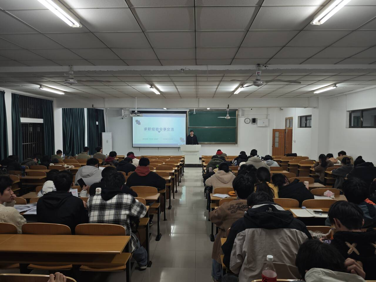 唐安波详细分享了申请硕博连读需要做的准备,包括科研素养的积累、导师的选择与沟通以及申请流程中的关键节点。他结合自身学术经历强调,指出学术研究既需要对科研的满腔热忱,更需具备坐得住 “冷板凳” 的定力与敢于探索未知的勇气,为有志于深耕学术的同学厘清了长远规划思路。郭毫朋聚焦于“如何找到一份心仪的工作”,从行业分析、岗位选择、简历制作到面试技巧,进行了全方位的“干货”分享,希望大家尽早确立目标,主动积累“硬实力”,夯实专业基础。郁鑫结合自身考研经验,从公共课复习规划、专业课重点把握、复习资料选择到备考期间的心态调整,给出了细致入微的建议。