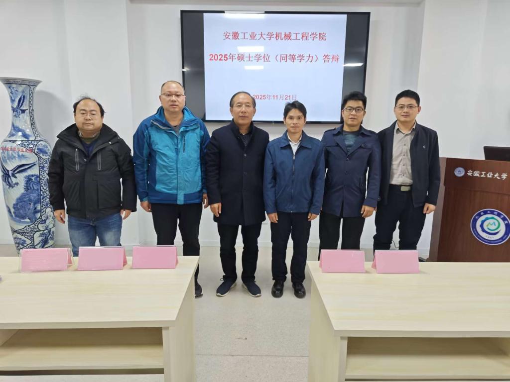 2025年11月21日下午,机械工程学院首个同等学力申请硕士学位学员徐源俊顺利通过硕士学位论文答辩,暨学校第一位通过答辩的学生。学院自2023年9月开始招收同等学力生,徐源俊系2024年3月入学,在求学期间,徐源俊不仅高质量完成硕士研究生全部课程学习,更以优异成绩一次性通过了同等学力申硕全国统一考试(外国语水平及学科综合水平)。在学位论文环节,历经论文开题、中期检查、论文检测、外审以及答辩等严格程序,达到了申请硕士学位的要求。