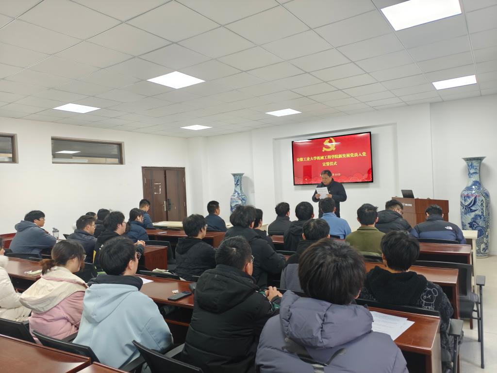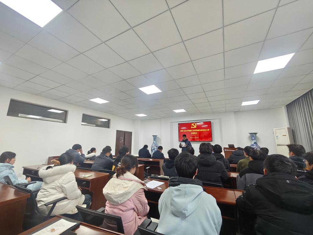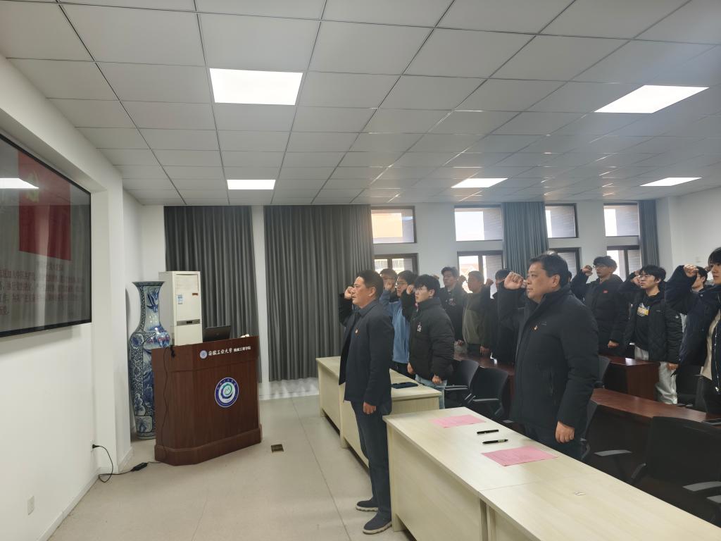 为进一步强化新发展党员的党性意识与责任担当,传承红色基因,凝聚奋进力量,12月15日下午,机械工程学院在机械楼 404 会议室举行新入党党员集体宣誓仪式。学院党委书记吴文兵、副书记陈庆林、新入党党员及老党员代表参加,仪式由党委秘书周环主持。