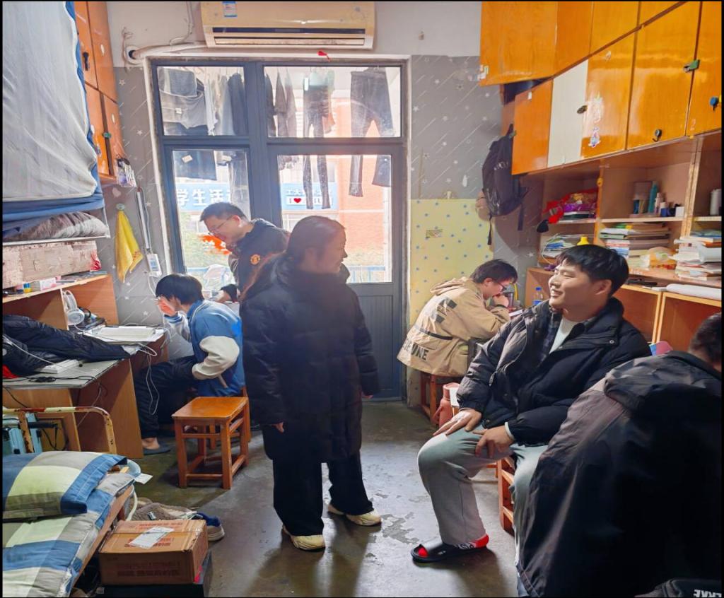 为进一步强化学生消防安全意识,排查宿舍安全隐患,筑牢校园安全“防火墙”,12月17日下午,机械工程学院2025级辅导员董春辉、毕苗深入学生宿舍,开展消防安全专项走访排查工作。