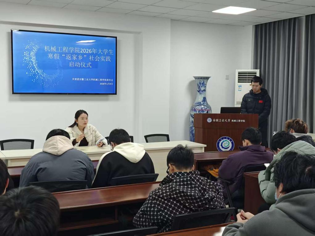 1 月 9 日,动员会在秀山校区机械楼学术报告厅拉开帷幕。学院团委书记王丹丹首先传达学校社会实践工作整体安排,深刻阐释 “返家乡” 实践的育人内涵与时代价值,强调这是机械工程专业学子将理论知识与生产实践相结合、深化专业认知的重要路径,鼓励同学们以 “带着问题调研、带着成果返程” 的务实态度投身家乡建设。会上,学院详细解读实践 “三大方向”“三大专项” 的具体任务,明确团队组建、流程报备、成果提交等关键要求,倡导跨班级、跨专业组队协作,确保实践活动接地气、有深度、见实效。同时,结合高校社会实践典型安全案例,从出行交通、现场实践、财产保护、网络信息等多维度开展警示教育,着重强调通讯畅通与每日行程报备制度,筑牢安全防线。