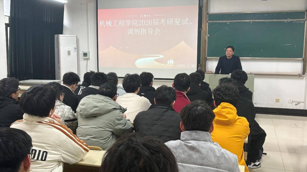 为帮助2026届考研学子明晰复试、调剂相关要求,增强应试信心,3月18日,机械工程学院召开考研复试、调剂专题指导会。学院党委副书记陈庆林主持会议并作指导,毕业班辅导员及百余位考研学子参会。