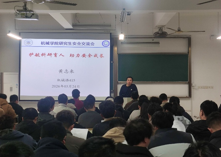 为进一步强化研究生安全防范意识,筑牢科研与校园安全防线,3月24日,机械工程学院在机械楼415开展研究生安全教育。实验室黄志来老师、辅导员王丹丹主讲,全体研究生参会。
