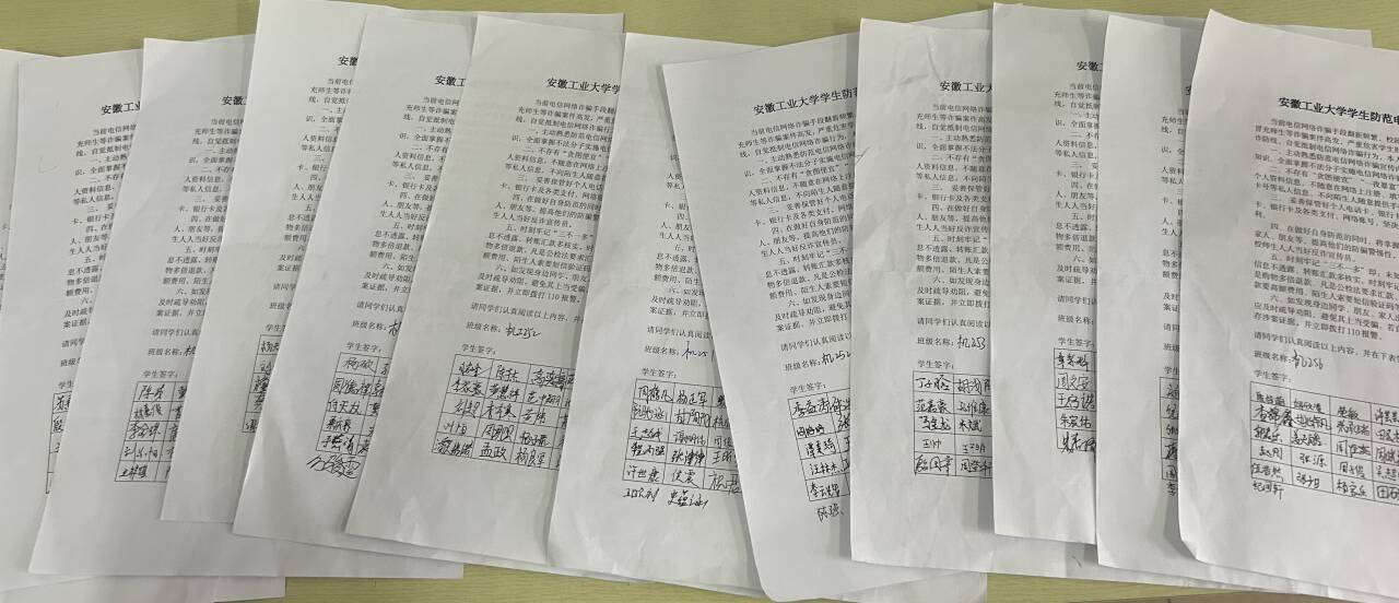 会议围绕当前高校高发电信网络诈骗类型展开系统讲解,结合刷单返利、冒充客服退款、虚假兼职、校园贷、AI拟声冒充熟人、钓鱼链接与虚假APP等典型案例,深入剖析诈骗分子的作案手法、话术套路与学生易受骗心理。毕老师重点提醒同学们警惕“低投入高回报”“账号异常”“包裹丢失”“公检法办案”等高频诈骗陷阱,强调凡是要求转账汇款、索要验证码、引导远程操作、下载非官方软件的,均为诈骗。 会上明确提出“不轻信、不透露、不转账”反诈三原则,要求全体同学做到:陌生来电不轻信、未知链接不点击、个人信息不透露、转账汇款多核实。董老师结合机械专业学生学习生活特点,叮嘱大家在实习求职、竞赛报名、网购消费、网络社交等场景中提高风险识别能力,自觉远离各类网络陷阱,不参与刷单、跑分等违法违规活动,守住法律与安全底线。最后,各班级学生签署《安徽工业大学学生防范电信网络诈骗承诺书》。