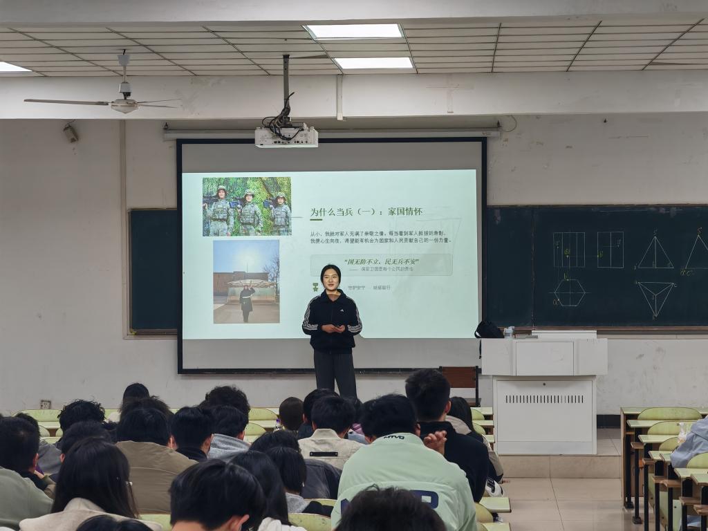 讲座通过为什么入伍、军旅生涯分享、职业生涯规划等三个部分展开,通过一张张图片和案例生动展现了不同于大学生生活的一段精彩经历。刘叶同学通过自己经历告诉同学们不管在任何地方、任何岗位都要坚毅、自律,要忠诚、有责任感。刘叶同学结合返校以后学习和将来的职业生涯规划,谈了自己的目标和具体行动措施,为同学们上了很好的一堂职业生涯规划课。