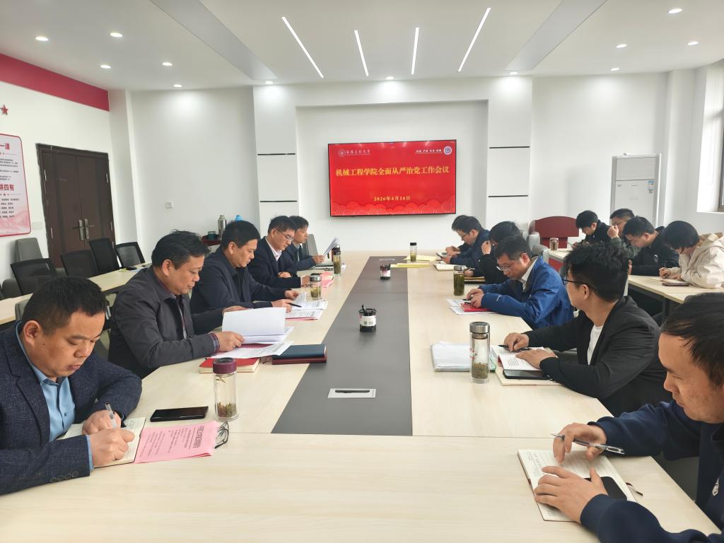 为深入贯彻落实学校2026年全面从严治党工作会议精神,纵深推进学院全面从严治党、党风廉政建设和反腐败工作,4月16日上午,机械工程学院在机械楼302会议室召开2026年度全面从严治党工作会议。院领导班子、党委委员、纪委委员、党支部书记、系(室)中心主任及科级干部参会。院党委副书记、纪委书记、副院长陈庆林主持会议。