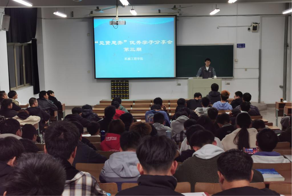 12月9日晚,机械工程学院第三期“见贤思齐”优秀学子分享会于佳山校区教二303成功召开,我院优秀学子徐俊鹏与2021级车辆工程、机器人工程专业新生们分享交流了自己大学期间的学习生活的经验和感悟。